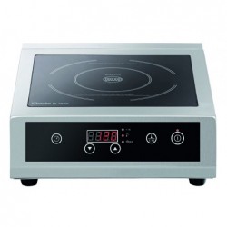 Réchaud à induction IK 35TC Surface en verre, boîtier en acier inoxydable Panneau de contrôle tactile avec affichage digital Minuterie 10 niveaux de puissance (500 - 3500 W) 10 niveaux de réglage de température Plage de température : de 60 °C à 240 °C Puissance : 3,5 kW / 220-240 V 50 Hz Thermostat de sécurité électronique Dimensions : L 340 x P 445 x H 117 mm Cet appareil ne se prête pas à un usage professionnel prolongé.
